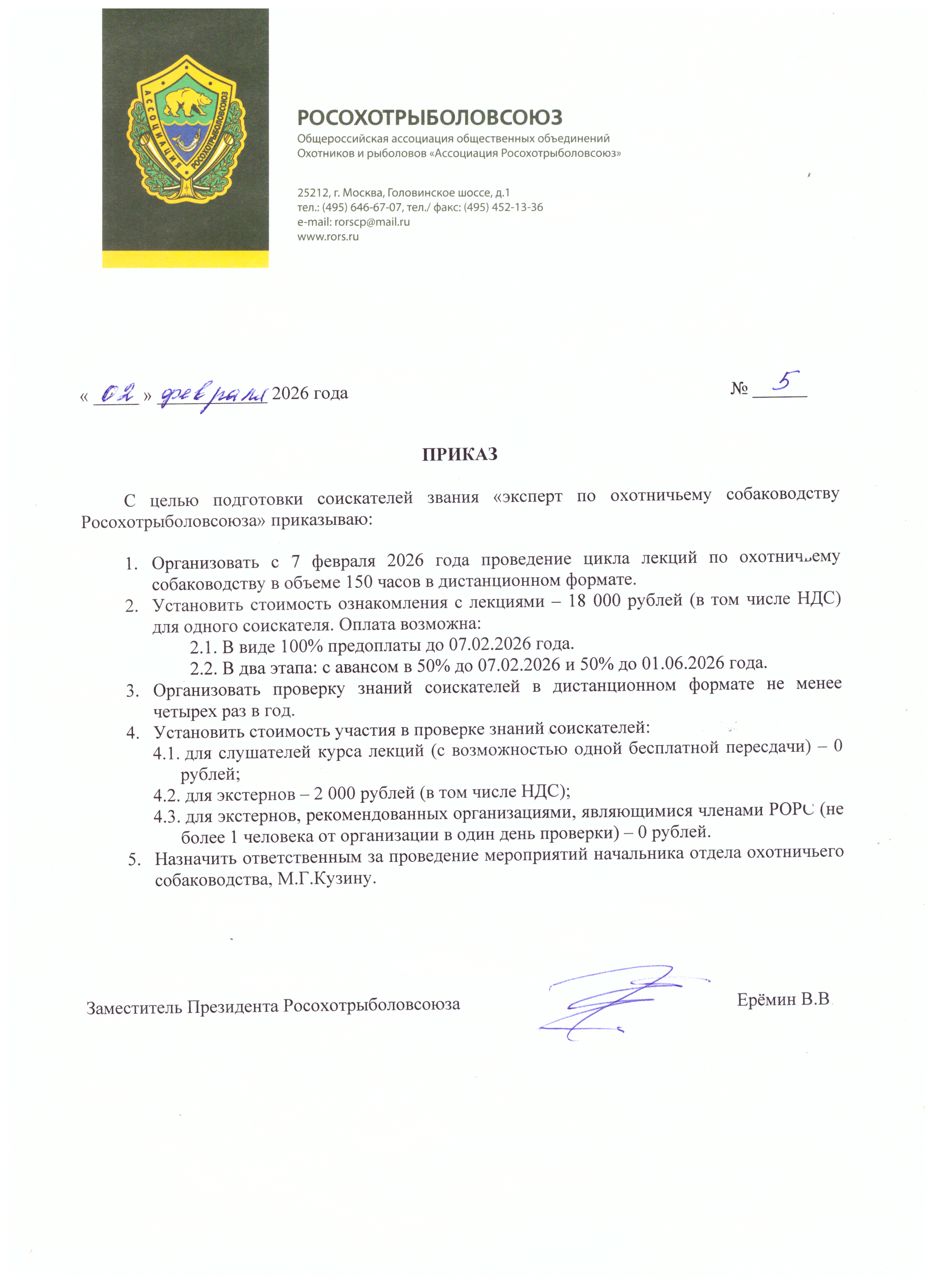 Приказ №20 от 19.02.2021. Об утверждении временных рекомендаций по организации племенных испытаний охотничьих собак. Страница 2.